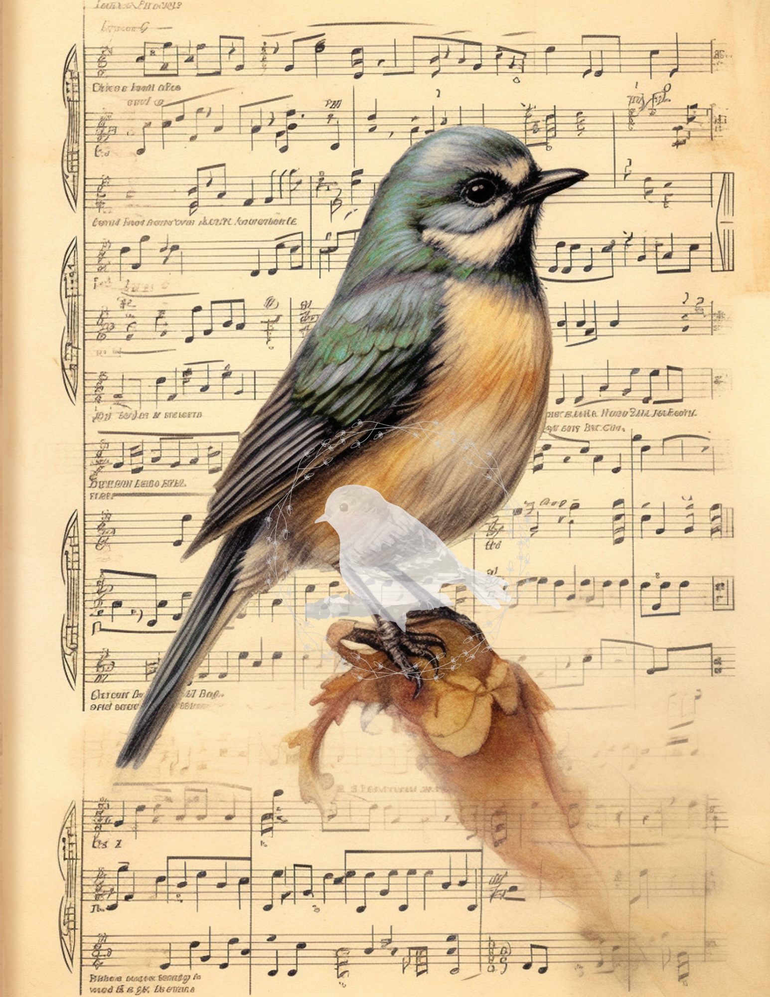 Bring timeless charm to your home with this set of four vintage-style songbird printables, each delicately illustrated over antique sheet music backgrounds.